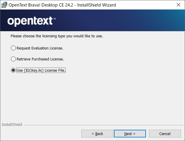 IGCKey.licファイルを入手済の場合、こちらを選択して「Next」をクリックします。