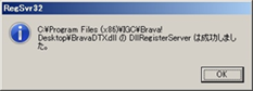 エラーの対象となっているDLLファイル(BravaDTX.dll)がBravaDesktopのインストールパス内に存在している場合は、以下の手順で手動でのレジストリ登録をすることによりインストールが成功する場合があります。