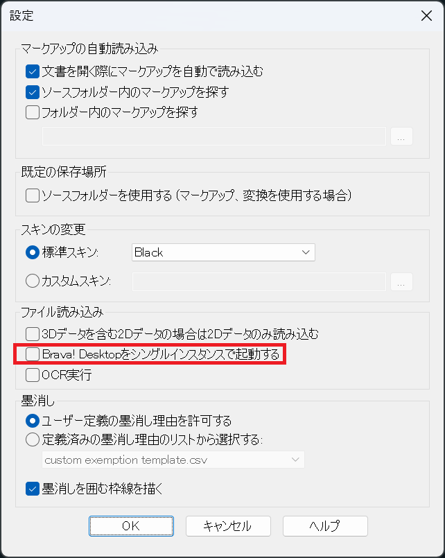 チェックを入れると、Brava Desktopは単一インスタンス(単一プロセス)で起動するようになります。